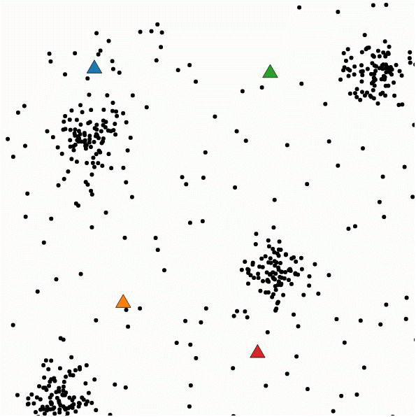 - 각각의 군집들의 평균을 계산하면서 해당 평균값이 움직이지 않을때까지 반복적으로 계산한다.