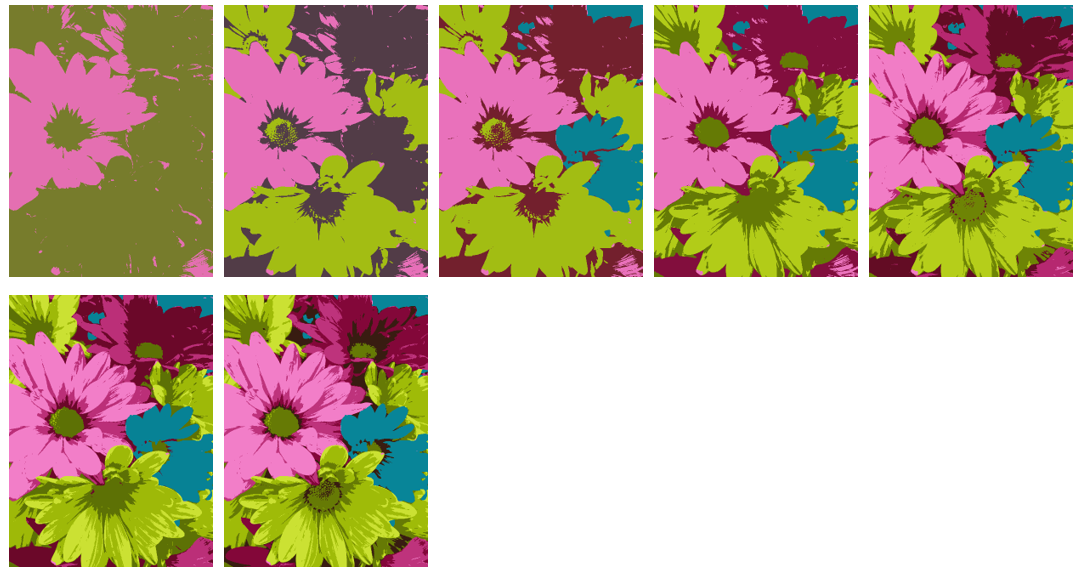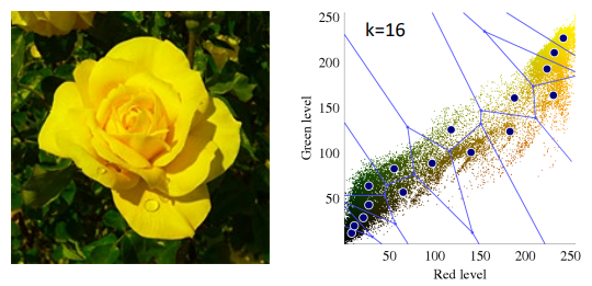 - 각 픽셀 값을 k개의 대표 색상으로 치환
