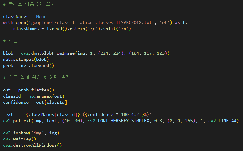 구글넷이라는 영상 인식을 가져와서 OpenCV에서 실행하는 방법에 대해서 알아본다.