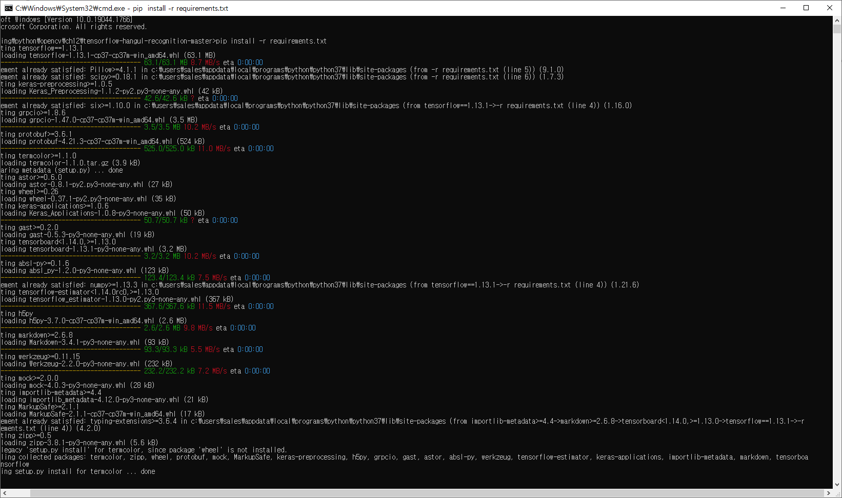 > 설치된폴더 \ tensorflow-hangul-recognition-master 폴더에서 아래 명령 실행