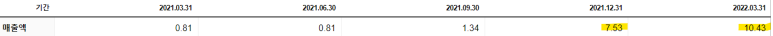 그리고 이번 1분기 매출액도 작년 4분기 매출액에 비해서도 증가하였다.