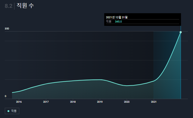 현재 직원수가 20년 말에 비해 약 4배정도 증가한 것을 볼 수 있다.