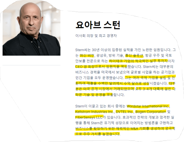 요아브스턴 ( CEO ) 가 연구개발에 적극적으로 투자할 계획이라고 하는 점,
