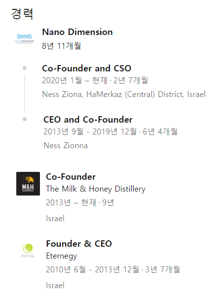 그리고 Nano Dimension을 창업하기 전 2번의 창업 경험이 있는 것으로 보입니다.