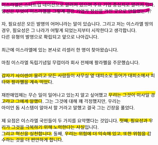 위 스토리에서 알수 있듯이 이스라엘에서는 괴물같은 스타트업들이 많이 나오는데 이의 배경을