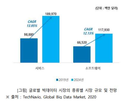 전세계 빅데이터 시장은 종류에 따라 서비스, 소프트웨어로 분류되는데
