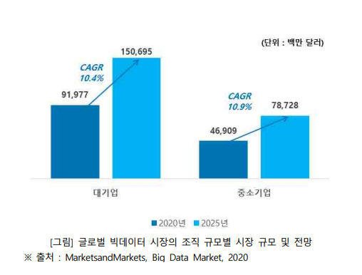 전 세계 빅데이터 시장은 조직 규모에 따라 대기업, 중소기업으로 분류하는데