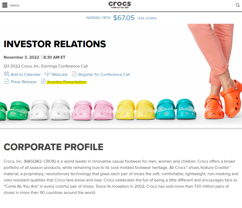 가장 최근에 발행한 크록스 투자자료를 볼 수 있습니다.