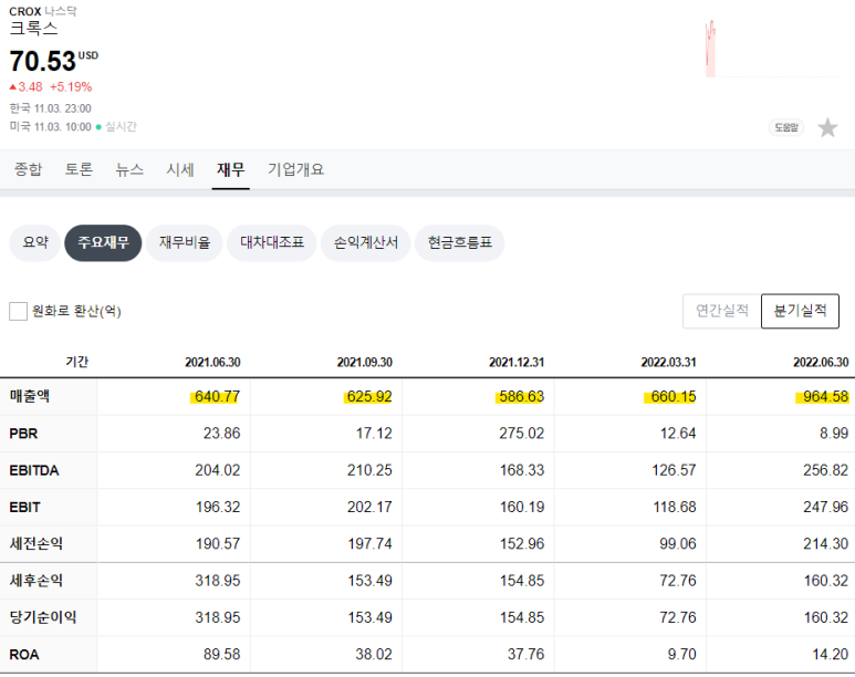 #크록스 #크록스분석 #크록스기업분석 #크록스실적 크록스 재무 CROX 에 대한 네이버 금융자료입니다. ...