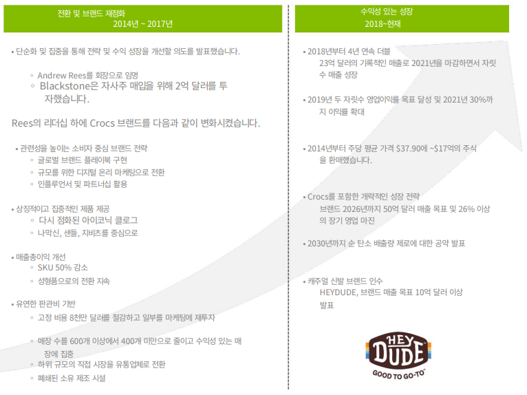 성장율 측면에서 봤을때는 크록스가 확실히 높다고 볼 수 있을 것 같습니다.