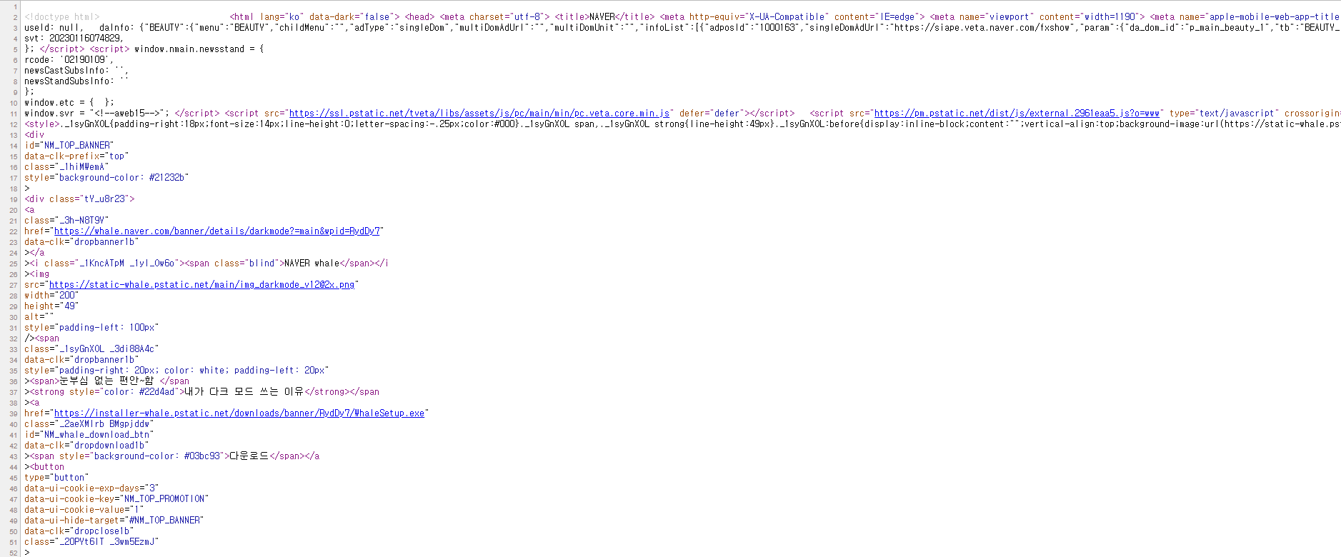 즉, 네이버에서는 위와같이 html이라는 규칙으로 만들어진 코드를 제공해주고