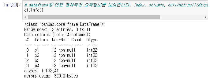 df.info는 DataFrame의 전체적인 정보를 보여주게된다.