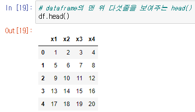 df.head는 DataFrame의 맨 위 다섯줄을 보여주게된다.
