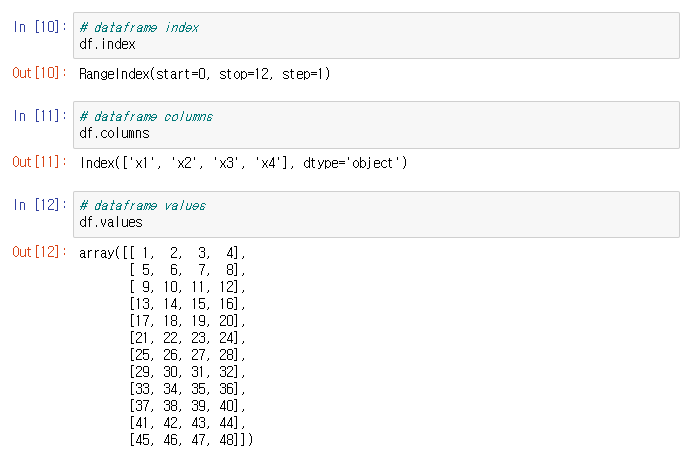 그래서 위 DataFrame에서의 구성들을 확인할 수 있는데