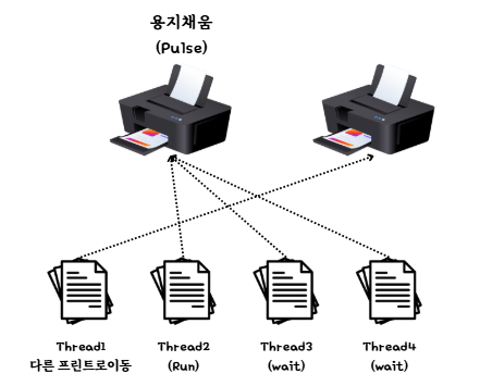 - 한 번에 하나의 스레드만 프린터 접근 가능