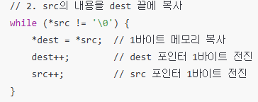 즉, strcat의 첫부분은 매번 null 문자를 찾아 목적지 문자열을 헤매다녀야하기 때문에 작업 규모가 커지면 성능이 떨어지기 때문이라고 합니다.