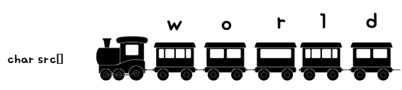 그런데 여기에 "World" 라고 저장되어있는 src char배열을 위 dest 배열에 붙여서 하나의 문장으로 만들고 싶은겁니다.