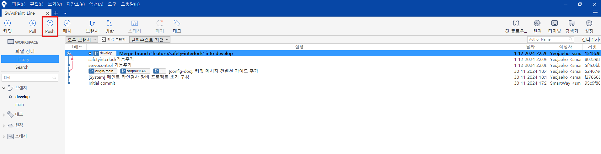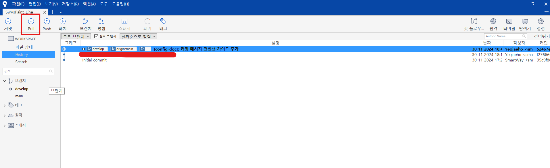 - develop 브랜치에서 최신 코드 받기 (Pull) (이미지 01)