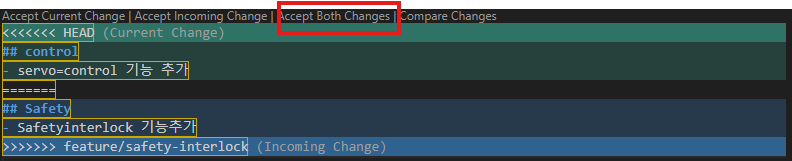 - 충돌이 있다면 feature 브랜치에서 먼저 해결