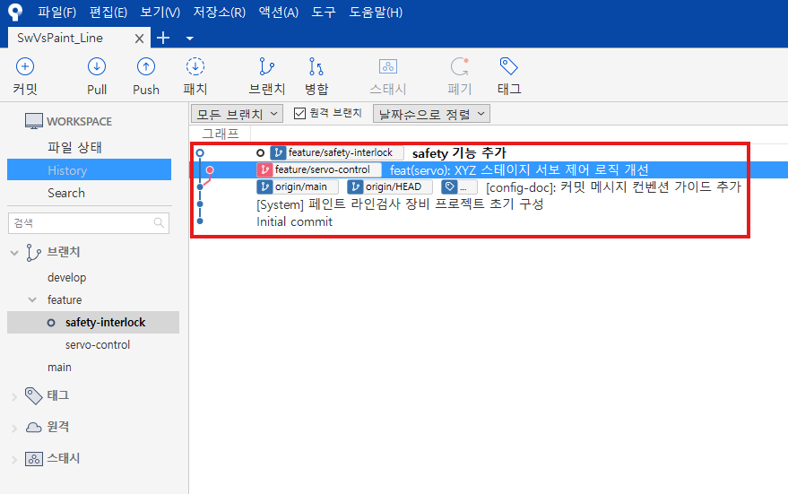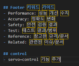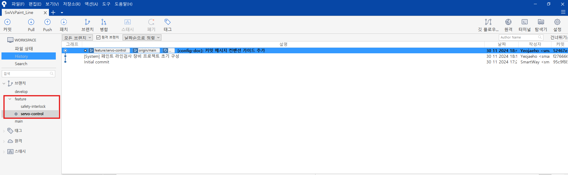 - feature/* : 새로운 기능 개발용 브랜치 ( 예:feature/servo-control )