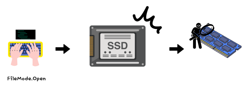 FileStream에서 FileMode.Open을 통해 실제로 SSD에 접근하게 됩니다.