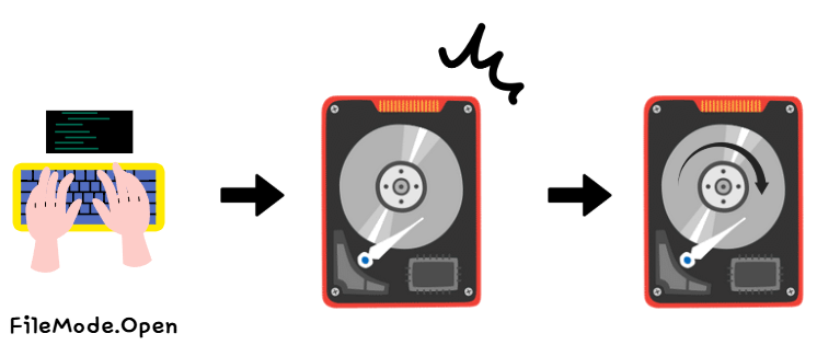 FileStream에서 FileMode.Open을 통해 실제로 디스크에 접근하게 됩니다.