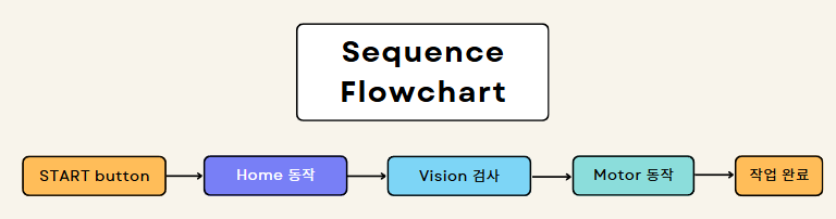 - 예: START 버튼 클릭 → HOME 동작 → VISION 검사 → 작업 완료.