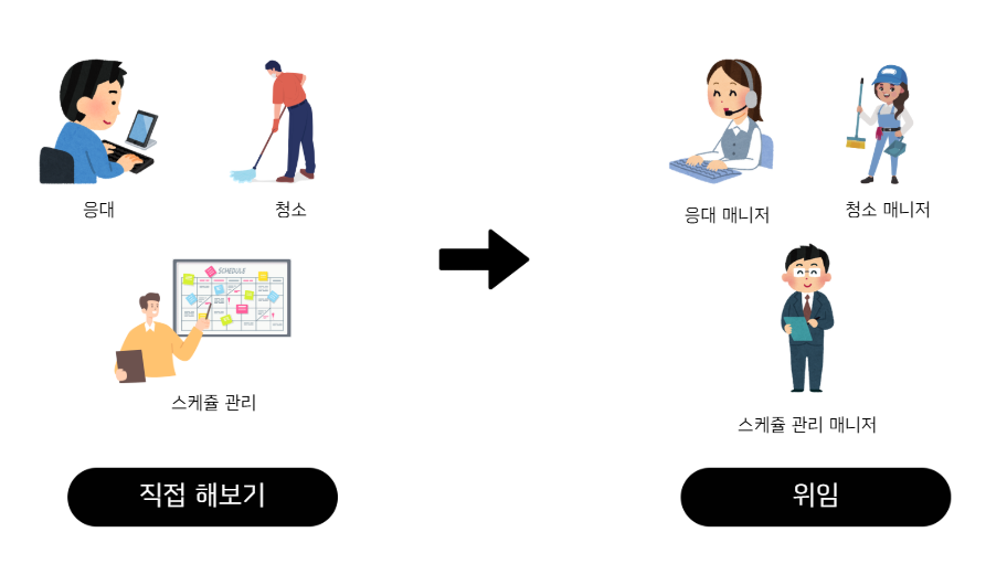 - 필요한 기능만 구두로 전달하고 "알아서 해봐"라는 방식의 위임은 시간을 벌 수 있지만