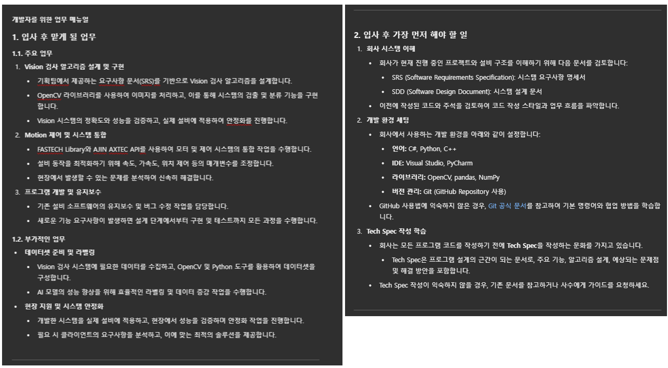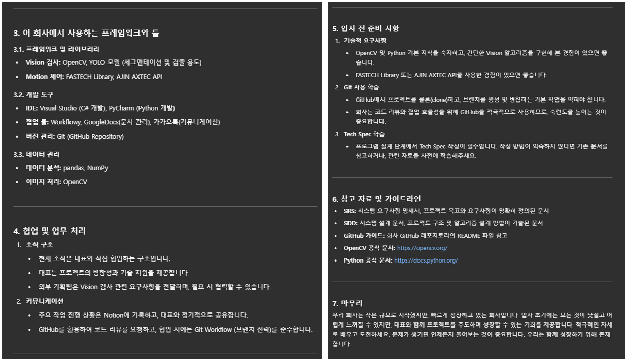 저는 Vision과 Motor 구조 설계에 4~5년 경험이 있는 개발자였습니다. 그런데 올해 사업을 준비하면서 제 주요 업무는 투자 유치와 관련된 비개발 업무로 이동했습니다.
