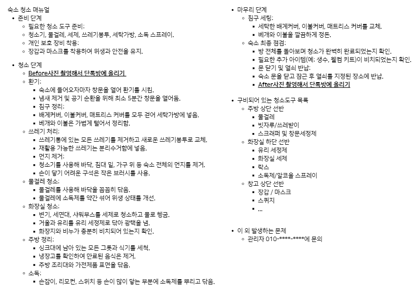 - 내가 이 숙소에서 어떤 청소를 하면되지? 모든 청소를 세세하게 다하는건가? 아니면 일부분만 하면되나?