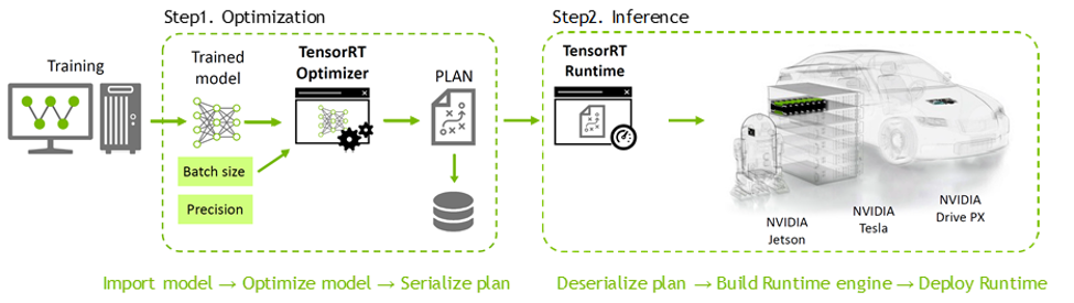 - NVIDIA GPU연산에 적합한 최적화 기법들을 사용해 훈련된 딥러닝 모델을 최적화 하는 역할