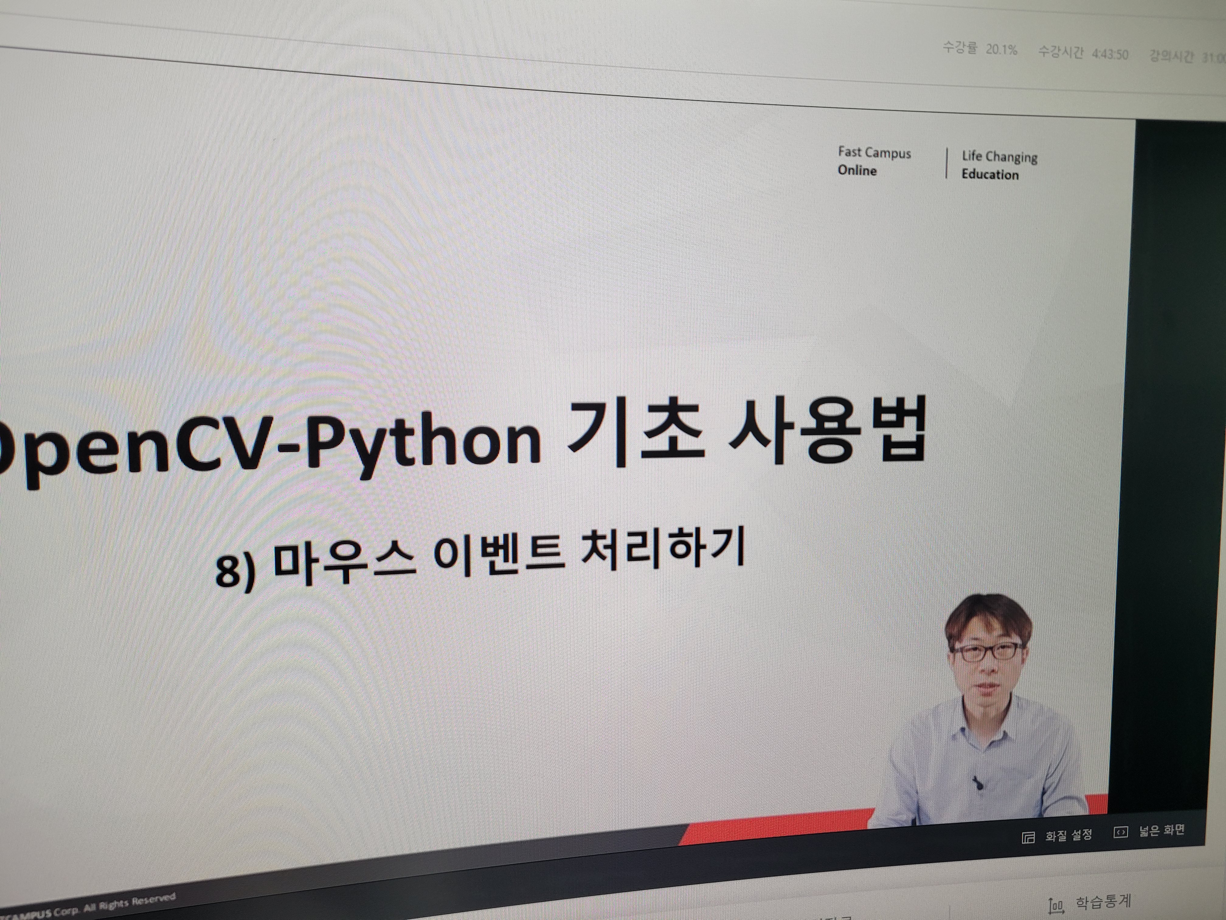 OpenCV에서 일반적으로 띄우는 window 창에서는 마우스 이벤트를 사용할 수 있는데이는 우리가 마우수를 사용해서 어떤 동작을하게될때 보통은 무시가되는데setMouseCalllback 함수를 사용하여 그 동작을 돌려받아 다른 기능을 할수 있다.