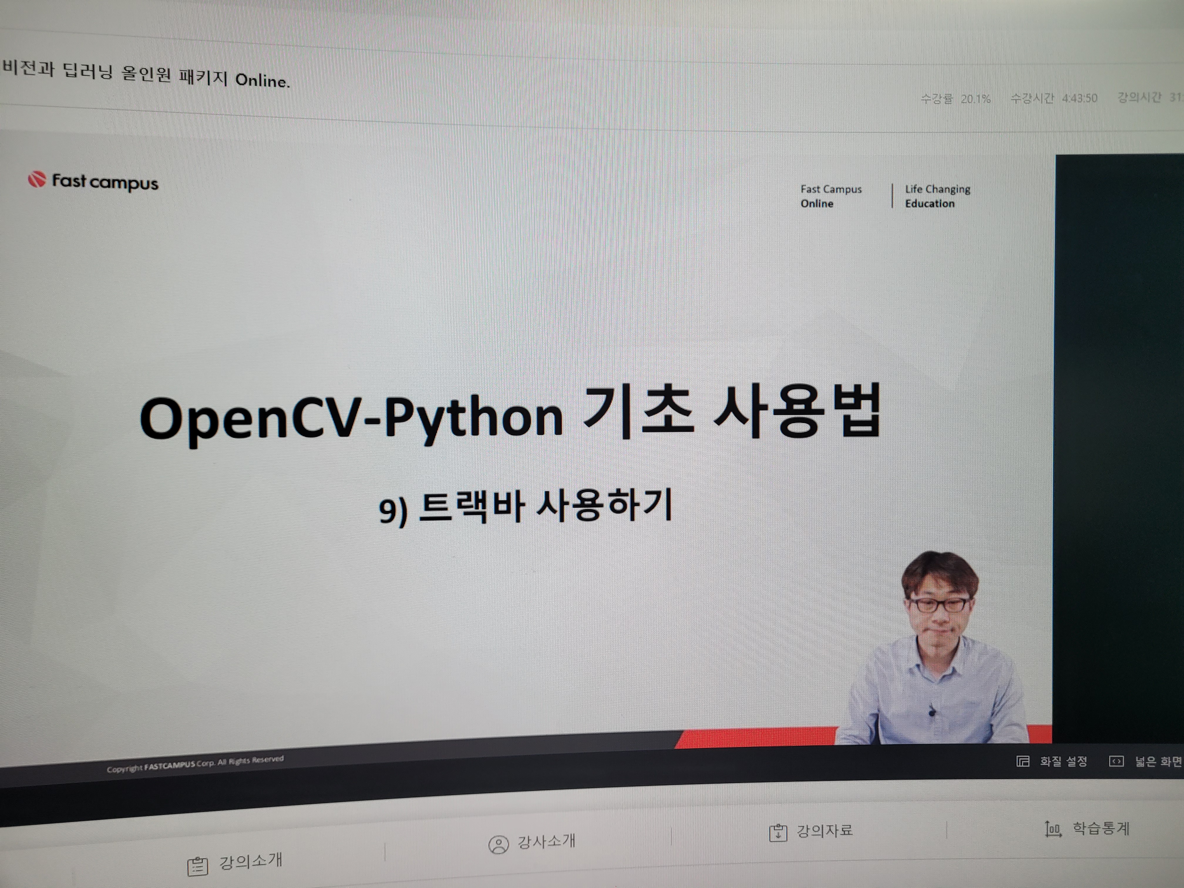 트랙바를 사용하기 위해서는 cv2.createTrackbar 라는 함수를 사용해야한다.