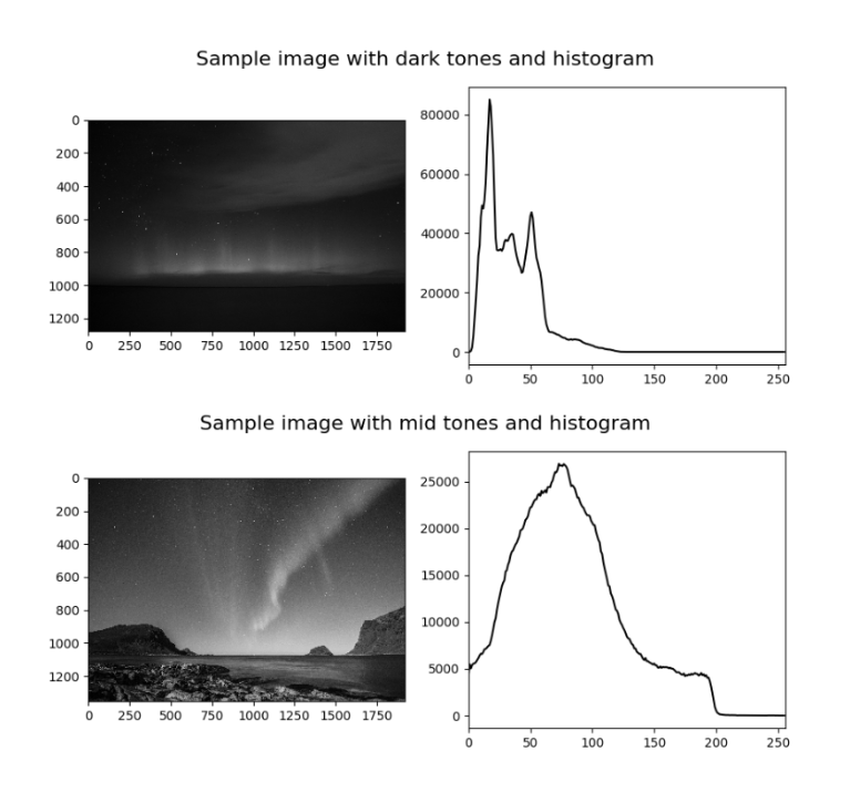 보통 영상은 히스토그램을 보고 밝은영상인지 어두운영상인지를 구분할 수 있는데
