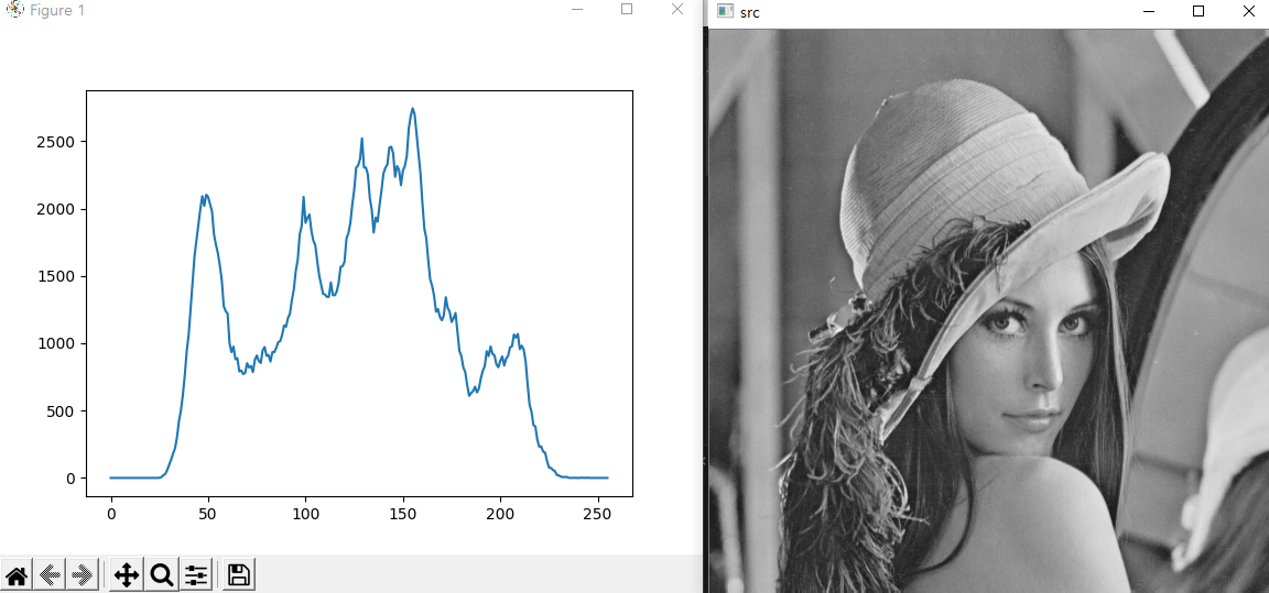 위의 이미지를 보면 해당 그레이스케일의 Value를 모아서 분포를 표현해놓은 값이다.