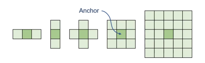 anchor : 고정점 위치 ( 입력을 -1,-1로 주게되면 kernel을 자동으로 계산하여 필터 중앙을 고정점으로 사용한다. )