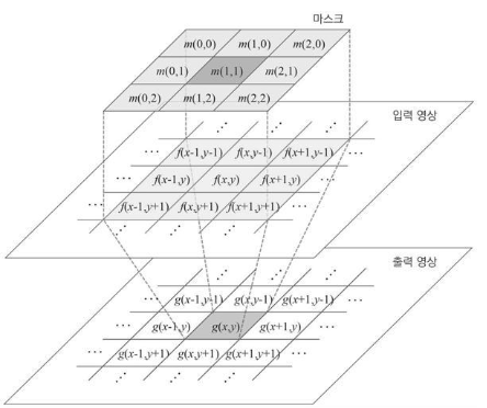 ( 작은 크기의 실수형 행렬 이용 , 마스크 = 커널 = 윈도우 = 템플릿 )