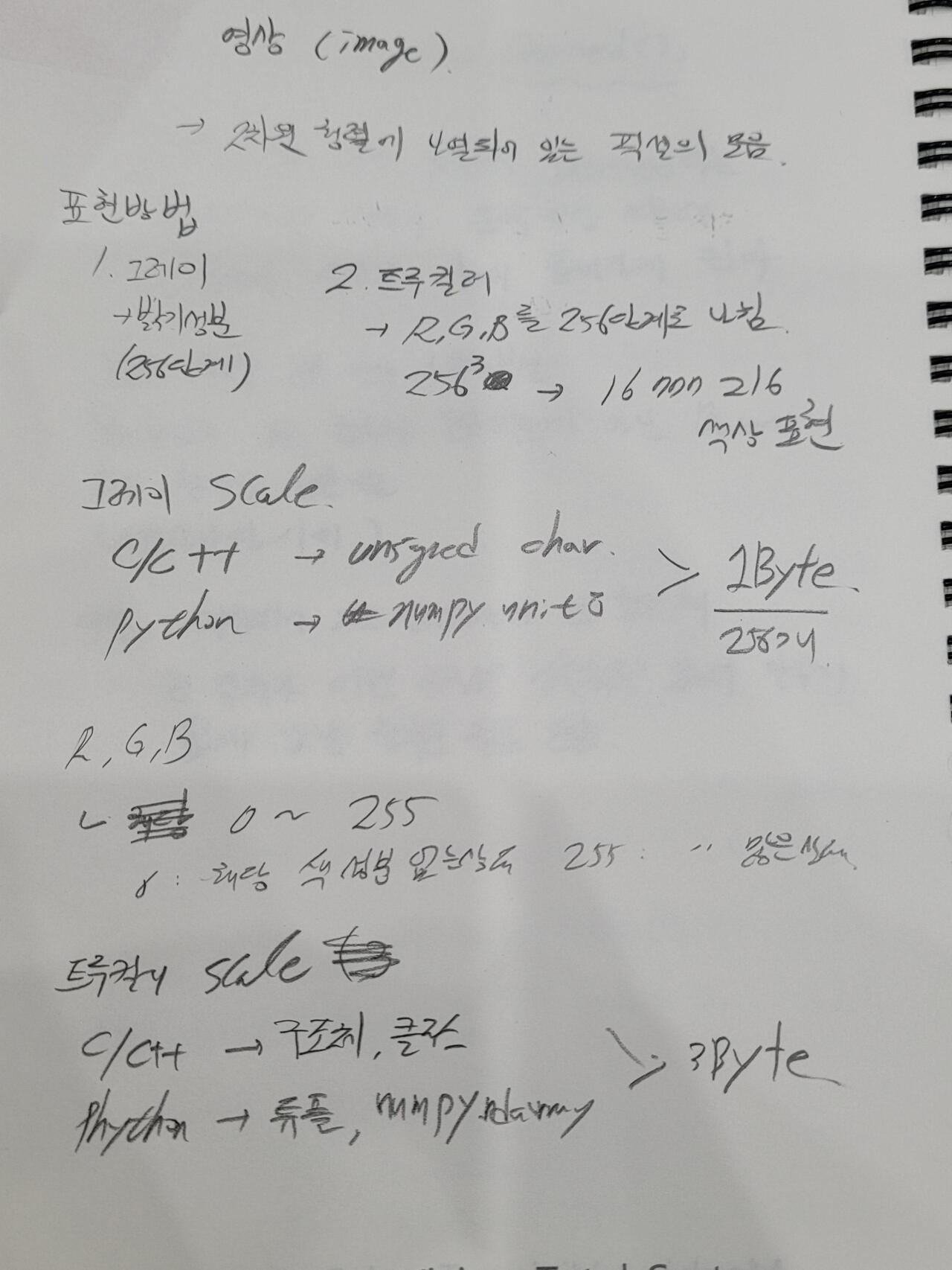 그레이 스케일과 트루컬러 영상의 크기에대한 차이점에 대한 설명도 해주셨는데