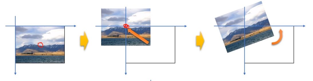 영상을 특정 각도만큼 회전시키는 변환 ( 반시계 방향 )