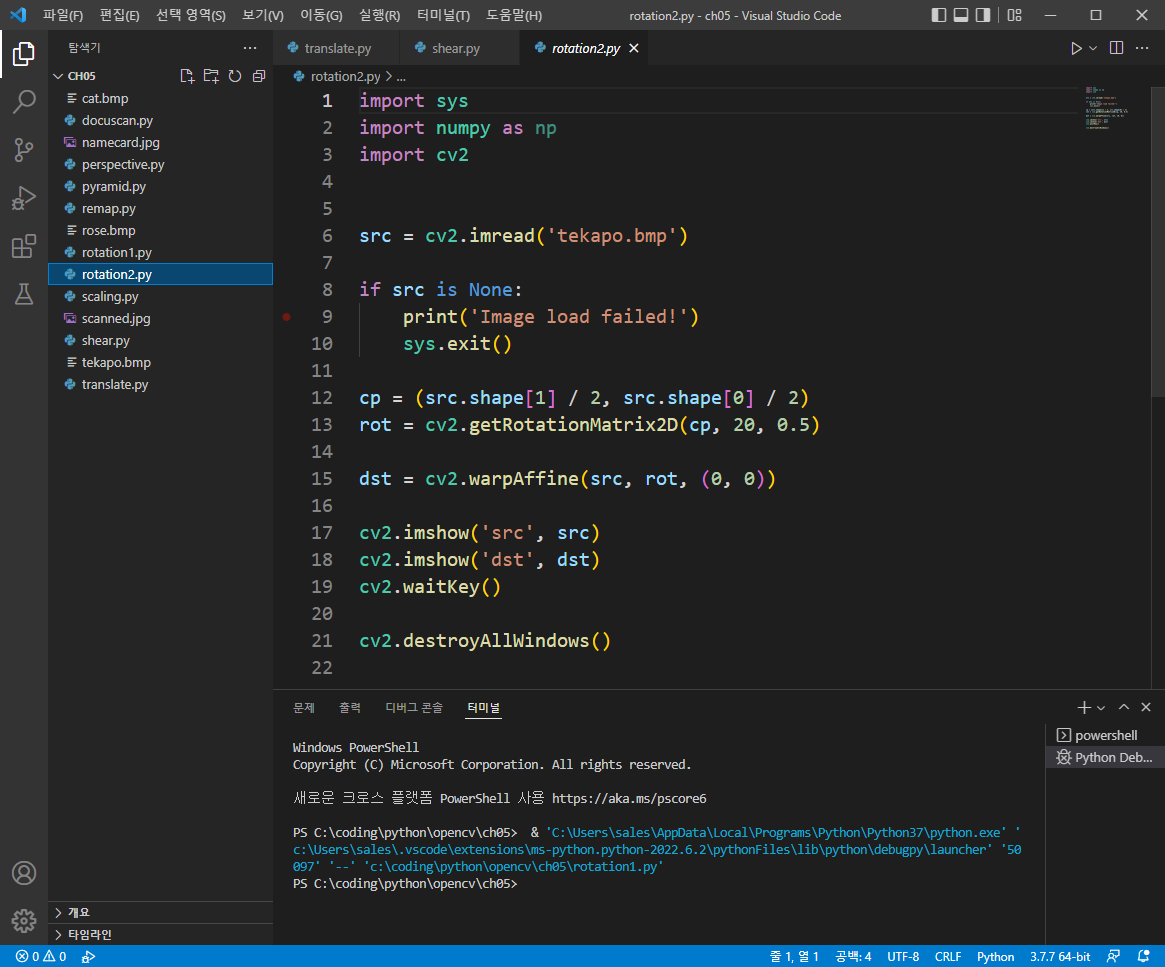 | [Open CV] 기하학적 변환 _ 영상의 이동 변환과 전단 변환 (0) | 2022.05.22 |