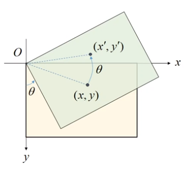 x,y 좌표를 반시계 방향으로 세타만큼 회전시킬때 위 수식을 대입시키면 x ' , y ' 의 결과값을 만들 수 있다.
