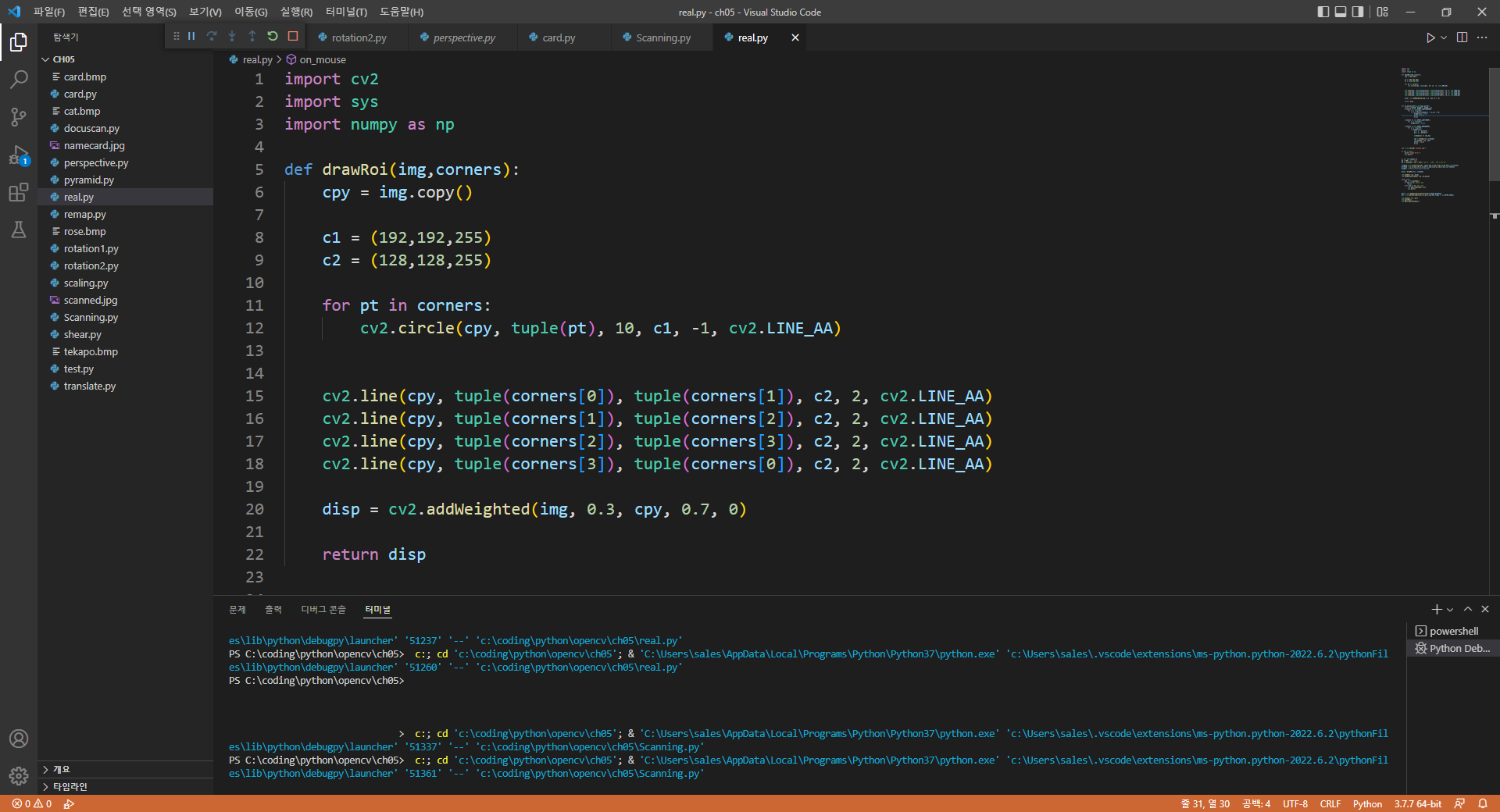 [Open CV] 기하학적 변환 _ 영상의 회전 (0) | 2022.05.25 |