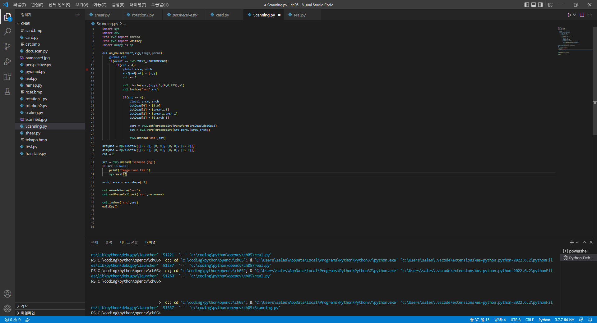 | [Open CV] 기하학적 변환 _ 영상의 회전 (0) | 2022.05.25 |