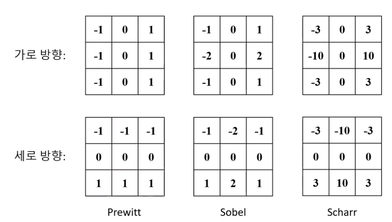 그 중에서도 Prewitt , Sobel , Scharr 의 3종류가 있다.