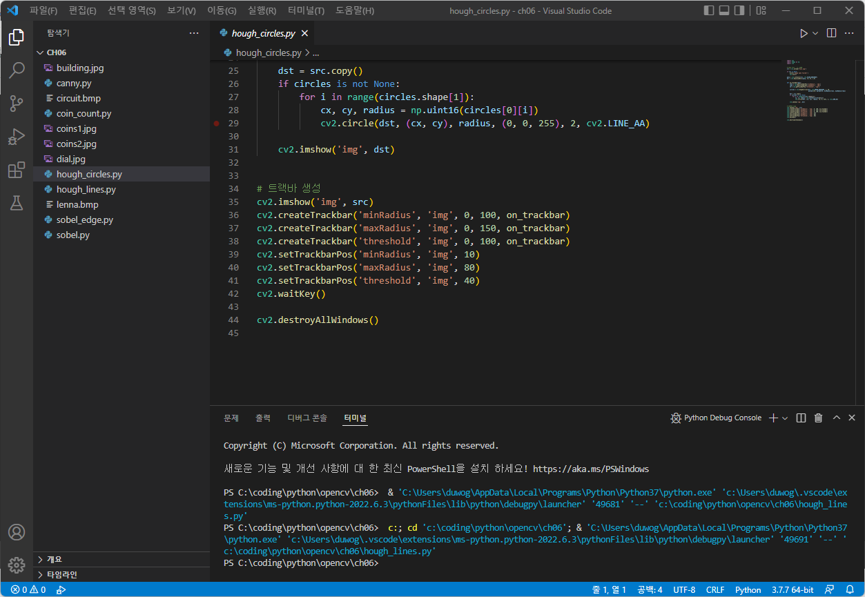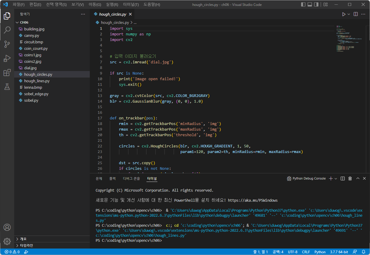 [Open CV] 영상의 특징 추출 _ 실전코딩 ( 동전 카운터 ) (0) | 2022.06.03 |
