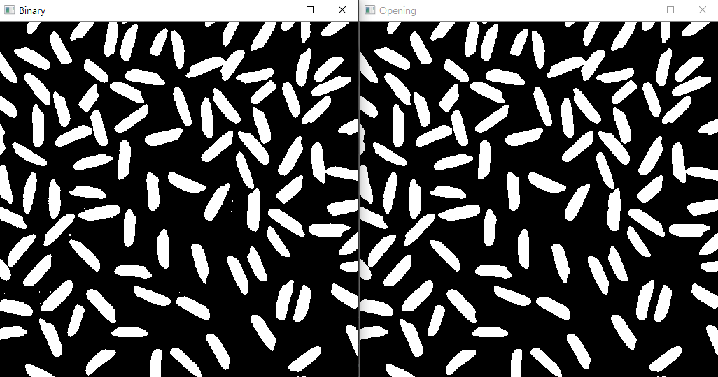그리고 위에서 본 것처럼 Opening = erode -> dilate 을 구현해줘도 같은 결과가 나오는 것을 볼 수 있다.
