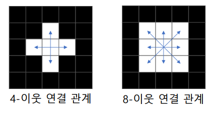 - 4-이웃 연결 관계 ( 4-neightbor connectivity )