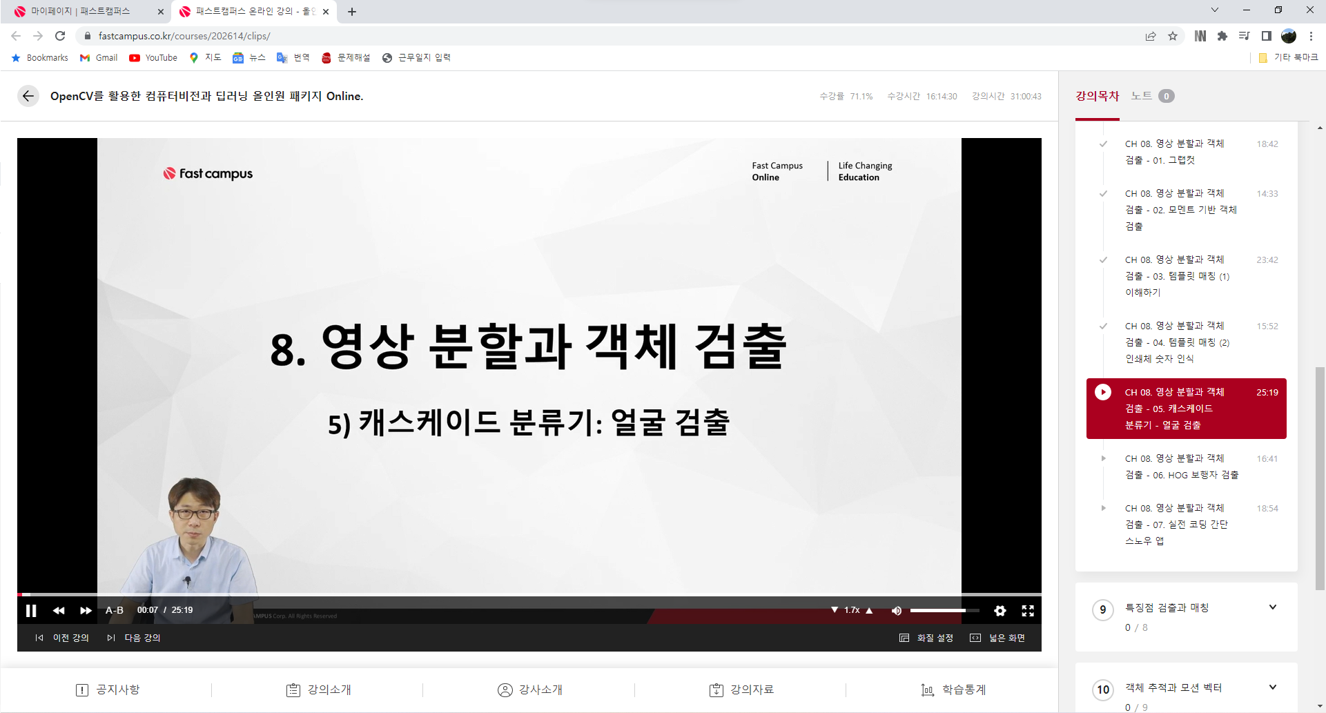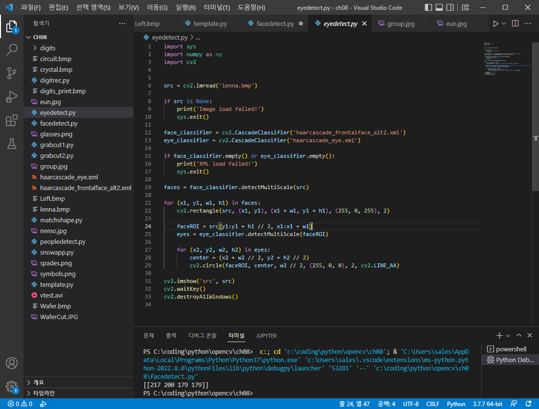 2022.06.16 금일은 캐스케이드 분류기 얼굴검출에 관한 강의였다.