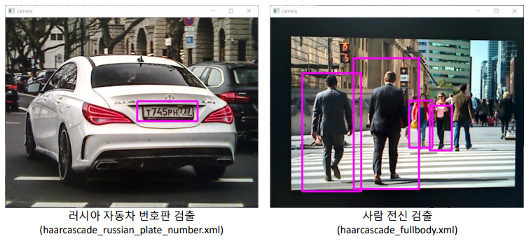 이 외에도 러시아 자동차 번호판 검출, 사람 전신 검출 등의 xml 파일을 사용한