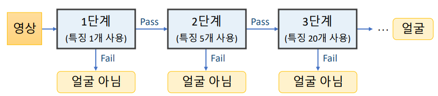 따라서 중요한 특징들을 필두로하여 얼굴 검출을 하고 얼굴이 아니면 Fail를 반환하여